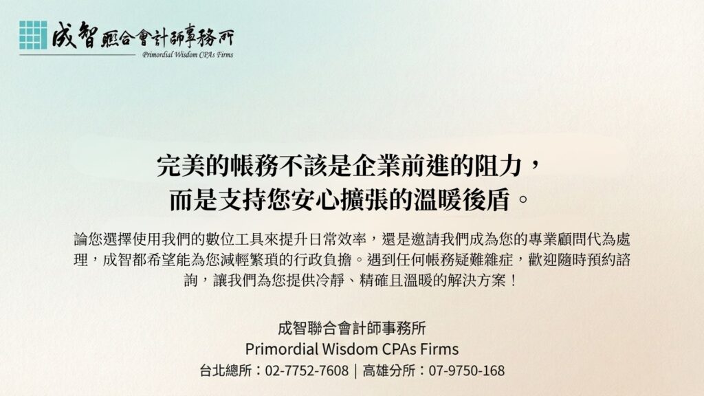成智會計師的話:讓每一次帳務處理,都成為公司的隱形助力