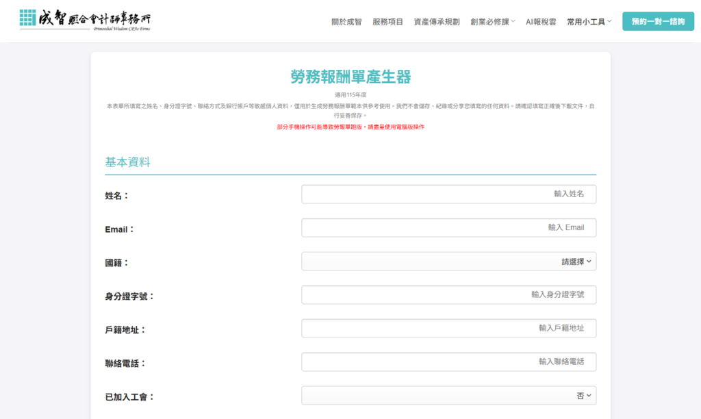 方案一:自己來也能超輕鬆!免費使用【成智勞報單線上生成器】