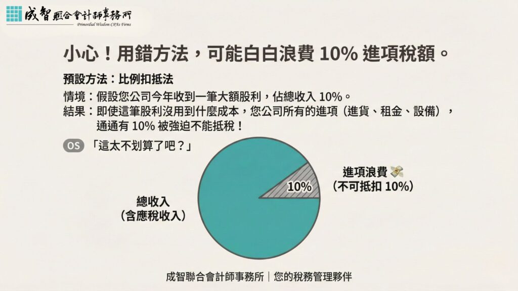 魔鬼藏在細節裡。如果您公司本業利潤不高,但突然收到一筆巨額股利(例如營造廠收到轉投資收益),這時計算方式的選擇就至關重要。